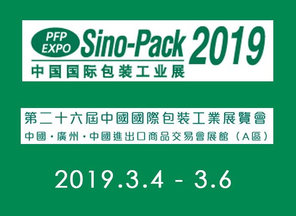 2019年3月4日 - 6日【第二十六届中国国际包装工业展览会】以及【中国(广州)国际包装制品展览会】。中国 .广州 .中国进出口商品交易会展馆A区 Hall & Booth No.:1.1号展馆-1735